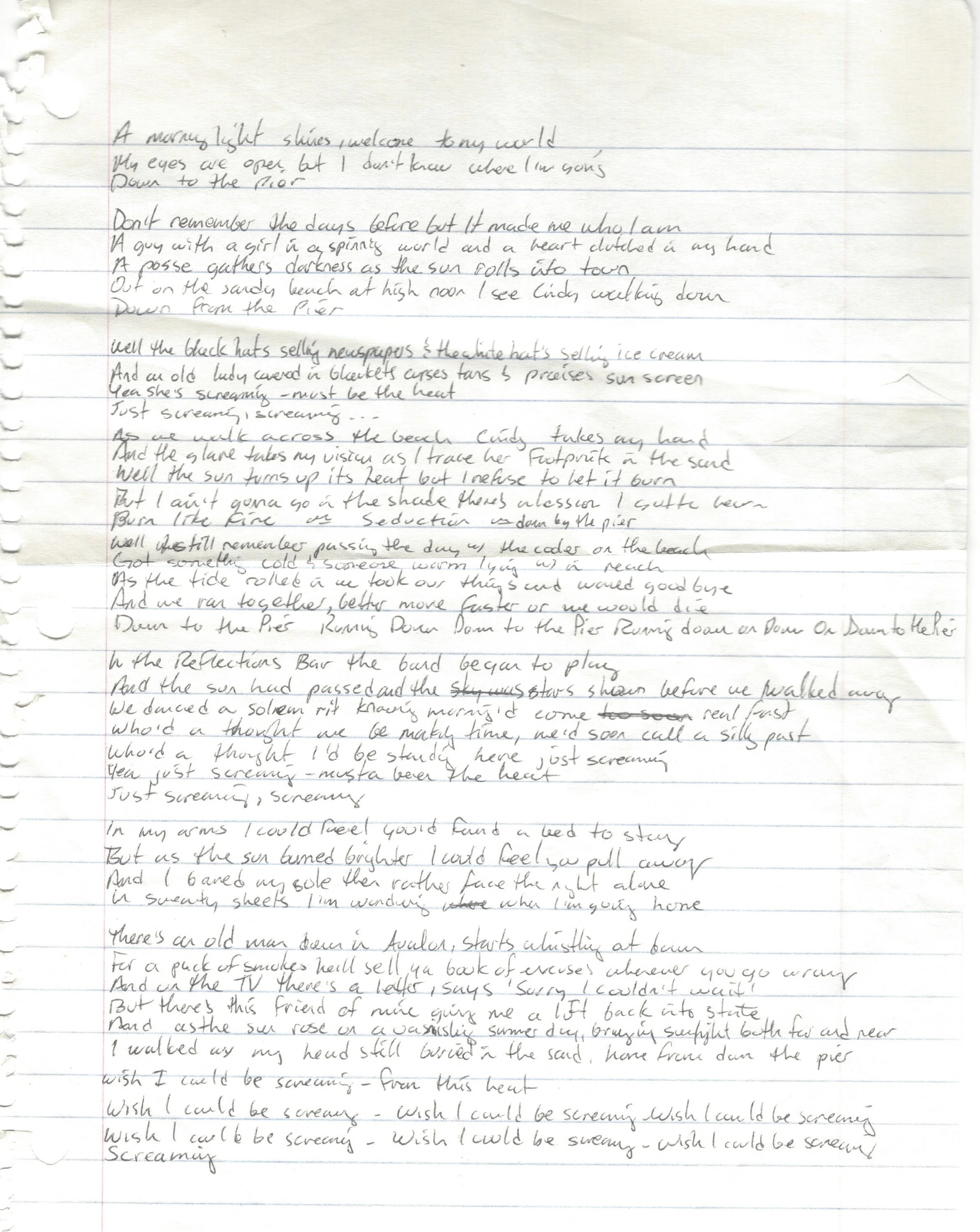 Back in my schooldays I wrote many lyrics in the margins of my school notebooks. Revisiting these pages 40 years later, songs that existed only on a page and in a dusty melody in my mind are given life for the first time. Acoustic guitar based arrangements, this stuff is all real. Guitar playing, vocals, all recorded live. Drums via drum pads, and other musical touches through MIDI Keyboard. All songs written 1983-1989. All lyrics were kept intact - no rewrites, any edits noted in the lyrics below.